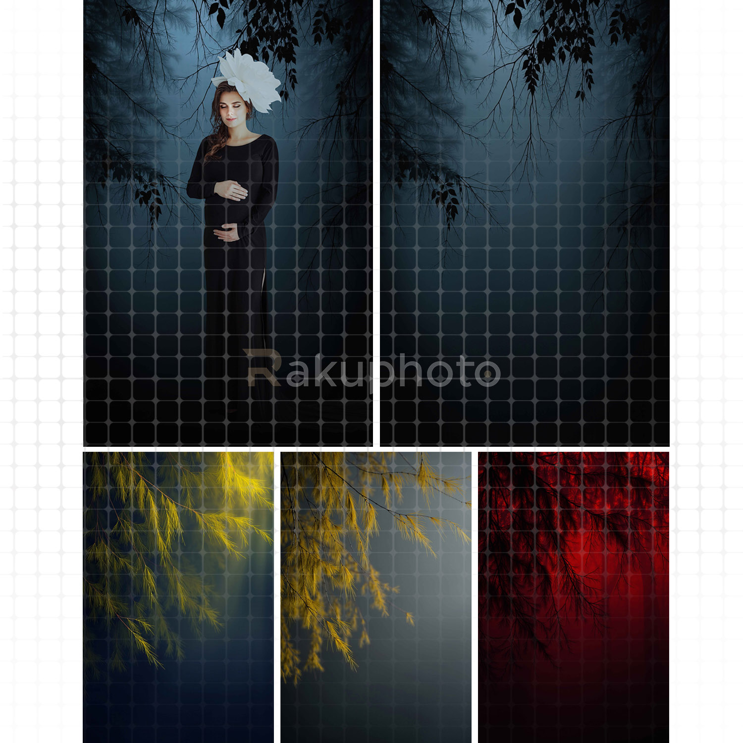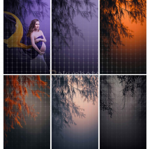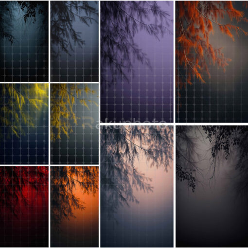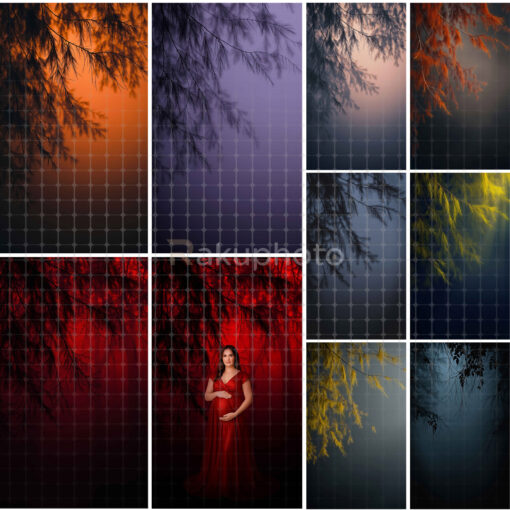 Transform your photography with this stunning collection of digital backdrops featuring dramatic foliage and enchanting light effects. Each background captures a unique mood with rich colors ranging from deep purples, fiery reds, warm oranges, and golden yellows to cool blues and mysterious shadows. The softly blurred gradients and delicate tree branches create a cinematic atmosphere, perfect for adding depth and elegance to your portraits. Whether you want a dreamy, romantic tone or a bold, dramatic style, these high-resolution backdrops provide endless creative possibilities. Designed for both professional studios and personal use, they bring sophistication and versatility to wedding, maternity, fashion, and fine art photography projects, helping your images stand out effortlessly.